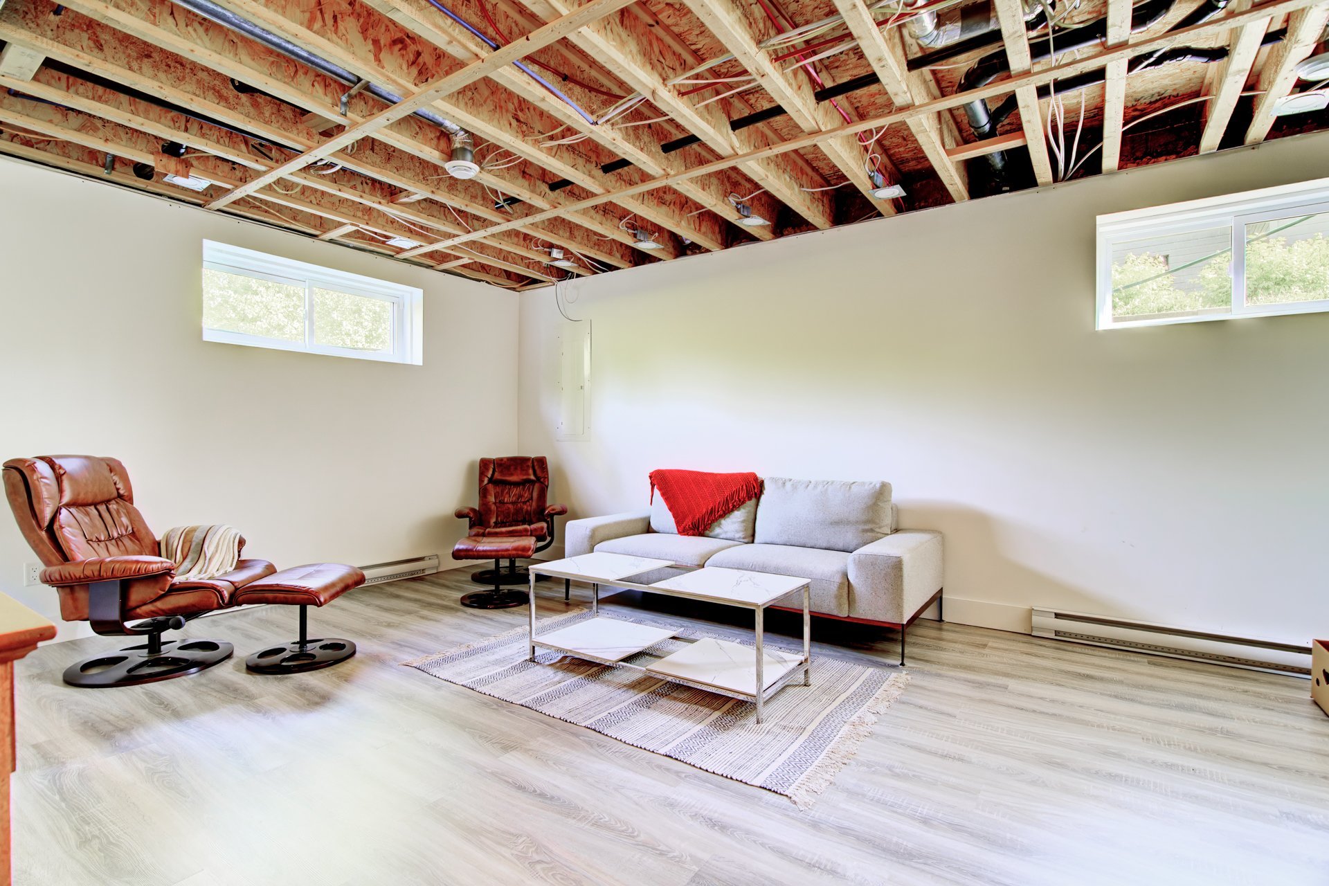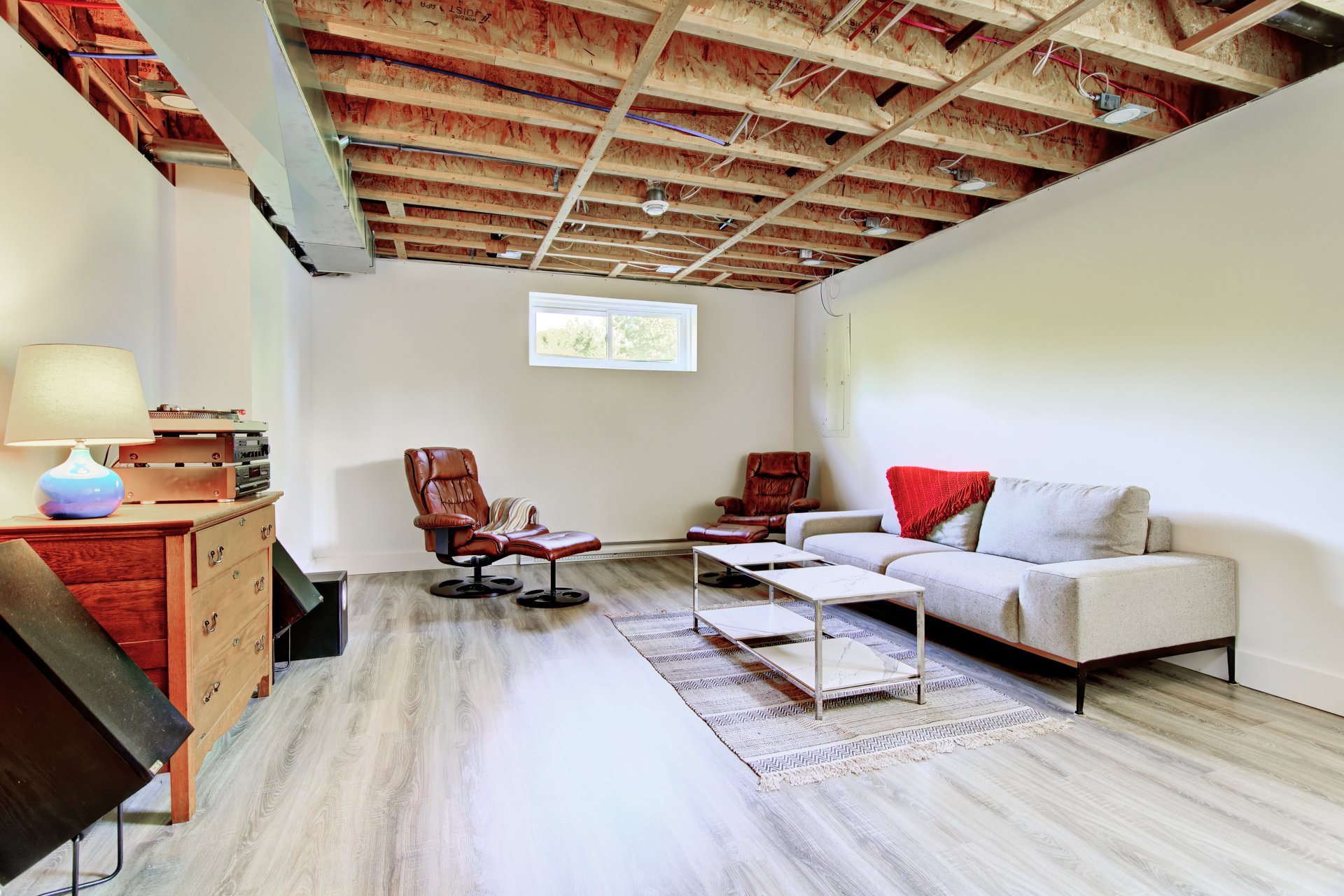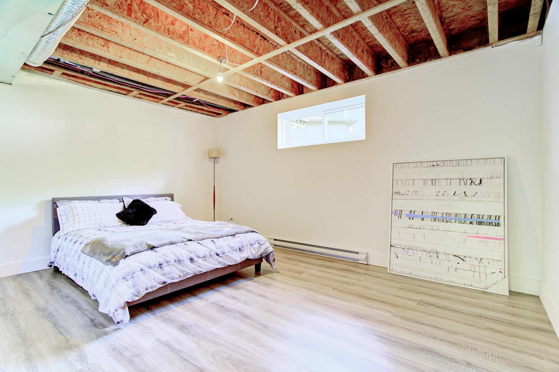 salle mécanique, plafonds non finis.