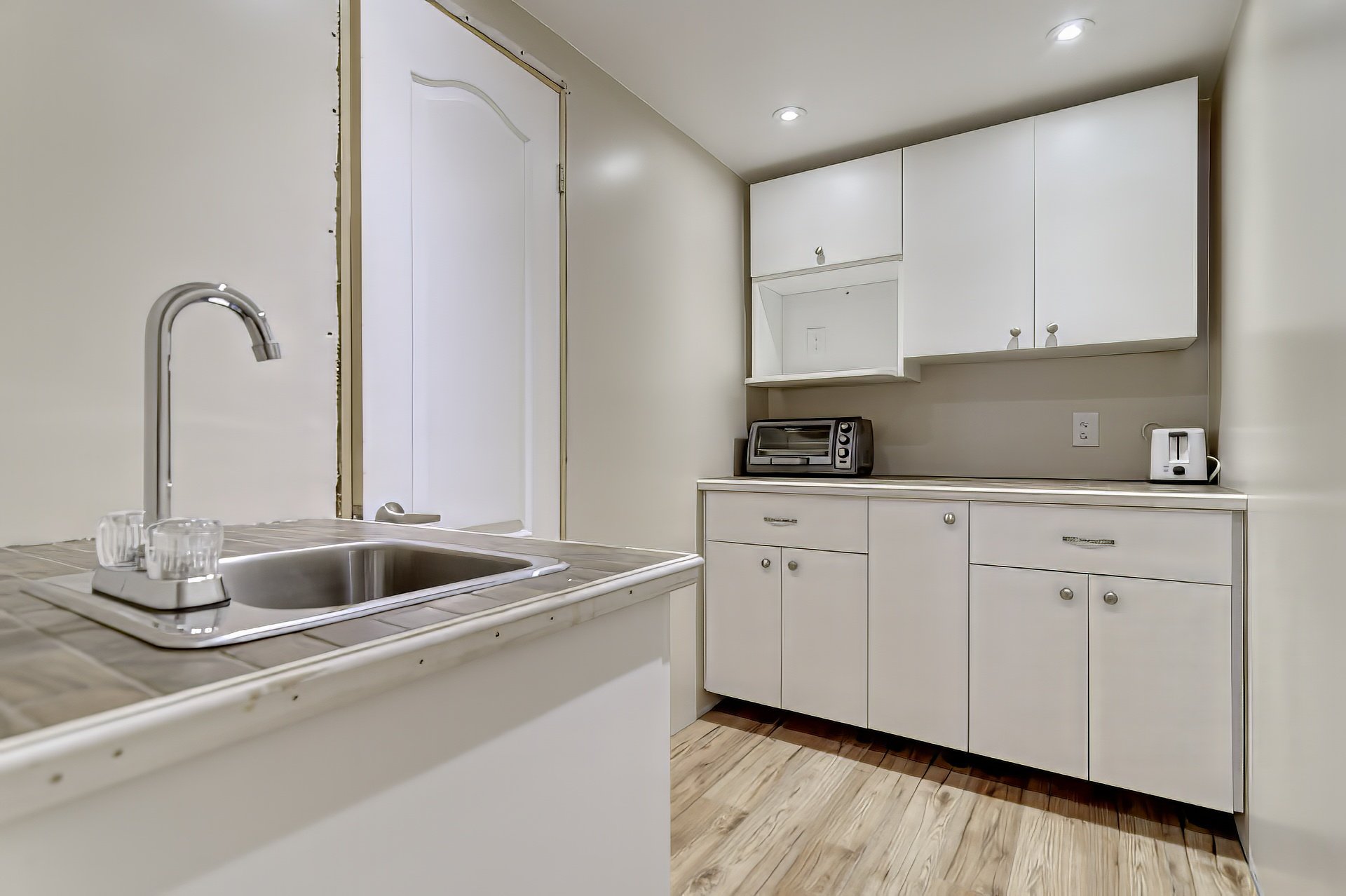 - Logement du haut (442) : Cuisine refaite (armoires et revêtement du plancher) et salle de bain rénovée