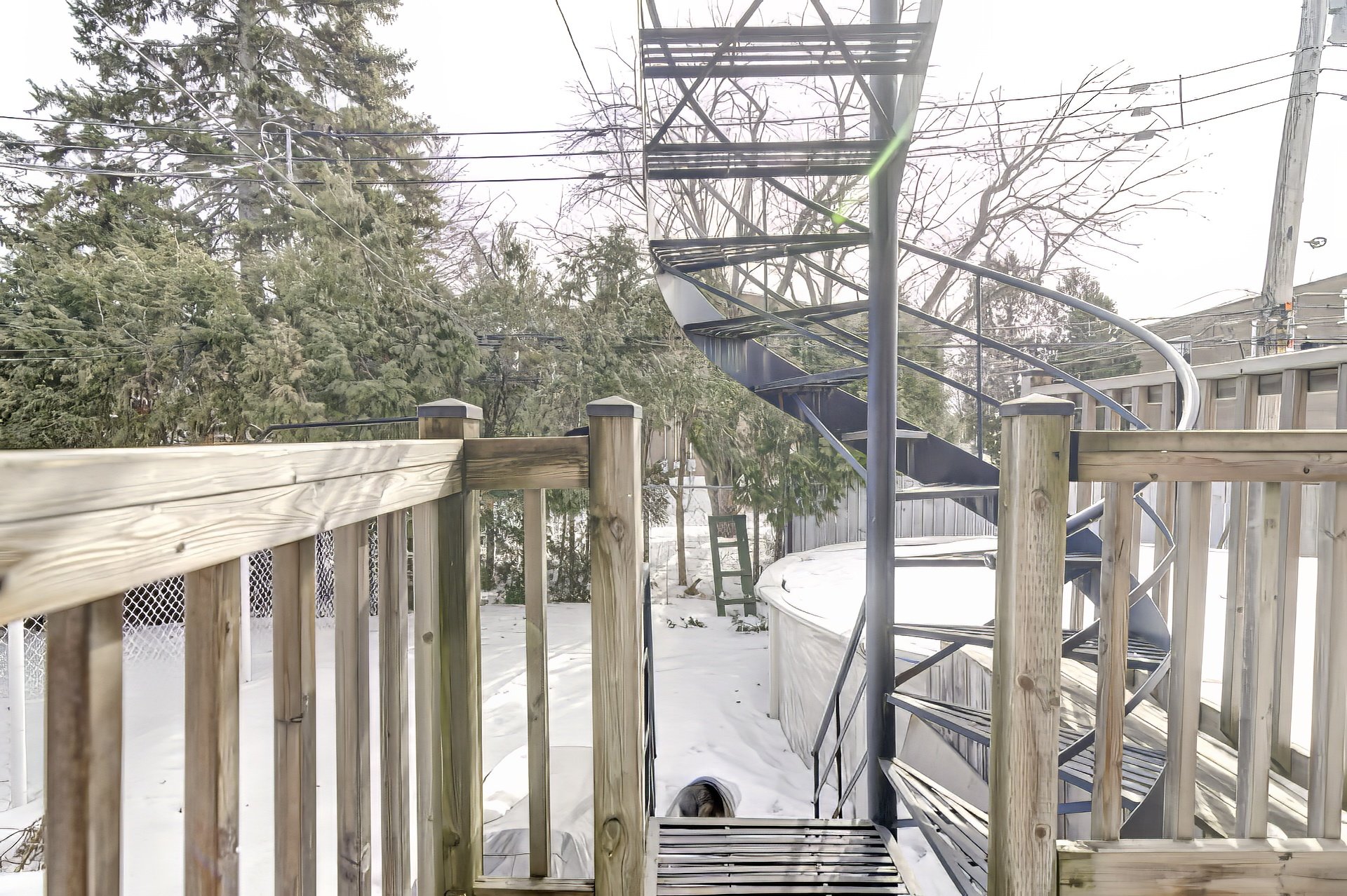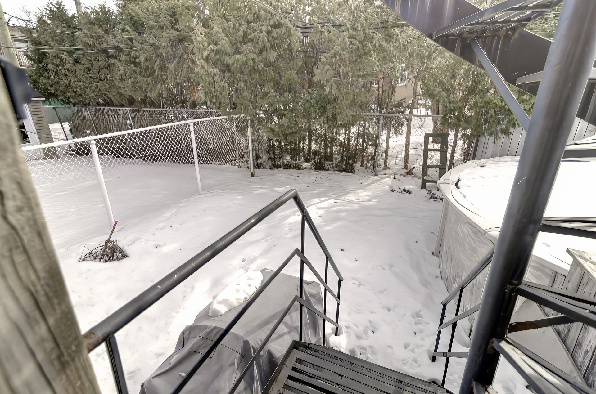 - Accès à la cour arrière par la cuisine avec piscine hors terre
